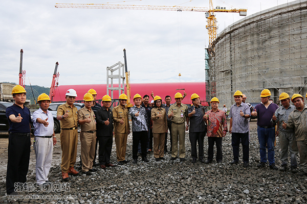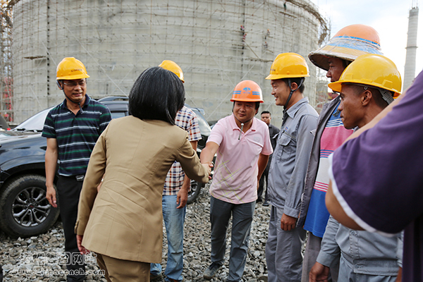 在施工現(xiàn)場(chǎng),省長(zhǎng)助理、縣長(zhǎng)與中、印尼籍員工代表一一握手問(wèn)好。省領(lǐng)導(dǎo)、縣領(lǐng)導(dǎo)一行了解生產(chǎn)工藝技術(shù)原理、勞動(dòng)就業(yè)、員工生活等情況,Yasti Soeprejo縣長(zhǎng)關(guān)切詢問(wèn)了現(xiàn)場(chǎng)熟料生產(chǎn)線建設(shè)情況,我方代表分別作了回答。